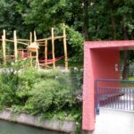 Ein weiterer Spielplatz, bei dem früher der direkte Zugang zum Auer Mühlbach möglich war, steht am Kegelhof. Leider ist der Übergang vom feinen Flußsand zum Bach mit einem alles andere als schönen Metallzaun versperrt. Wir würden uns wünschen, dass der alte Zustand wieder hergestellt wird. Am Kegelhof 8 befindet sich auch der Kinder- und Jugendtreff Au.